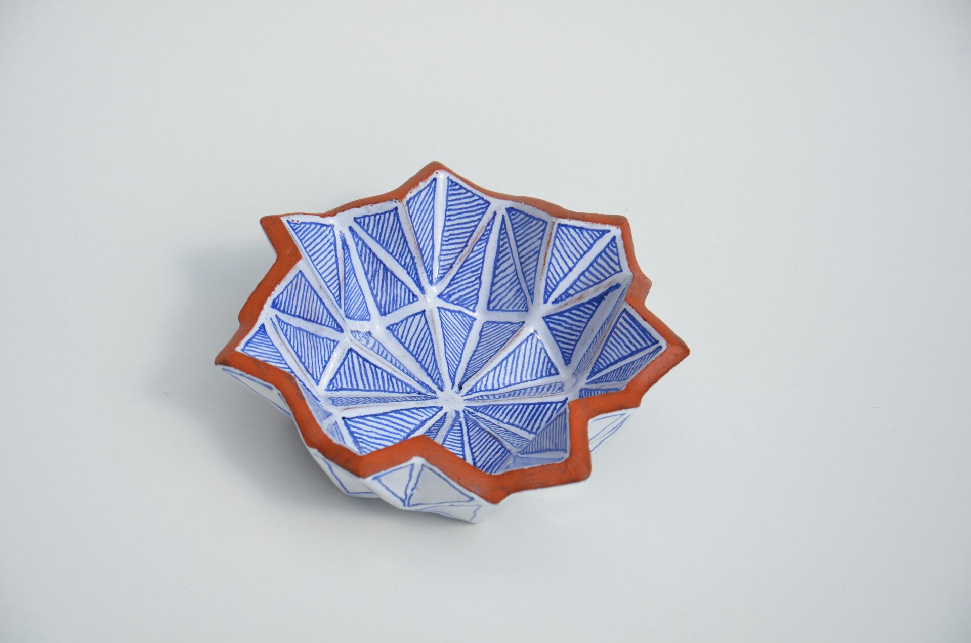 Een combinatie van eeuwenoude technieken met een hedendaagse visie. Of het nu gaat om gedraaid werk op de pottenbakkersschijf, of stukken opgebouwd uit platen klei, elk item is het resultaat van een uniek proces. Deze mix van methoden resulteert in objecten die zowel verrassend als vertrouwd aanvoelen, met geometrische vormen en gedetailleerd gecarved of beschilderd werk.