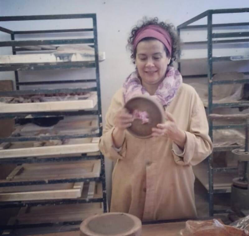 Sandra woont in Portugal en is bekend met de Nerikomi techniek, dit is een verfijnde Japanse keramiektechniek waarbij verschillende kleuren klei of porselein worden samengevoegd, gestapeld en gesneden om patronen te vormen.